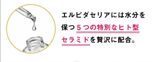 「エルピダセリア(ELPIDACERIA)」には5つの特別なヒト型セラミドを贅沢に配合しています。