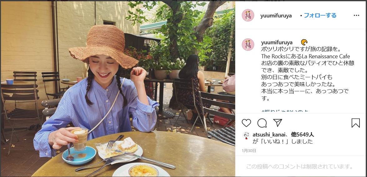 古谷有美アナが五郎丸似の外資系金融マンと旅行に行った時のインスタ写真